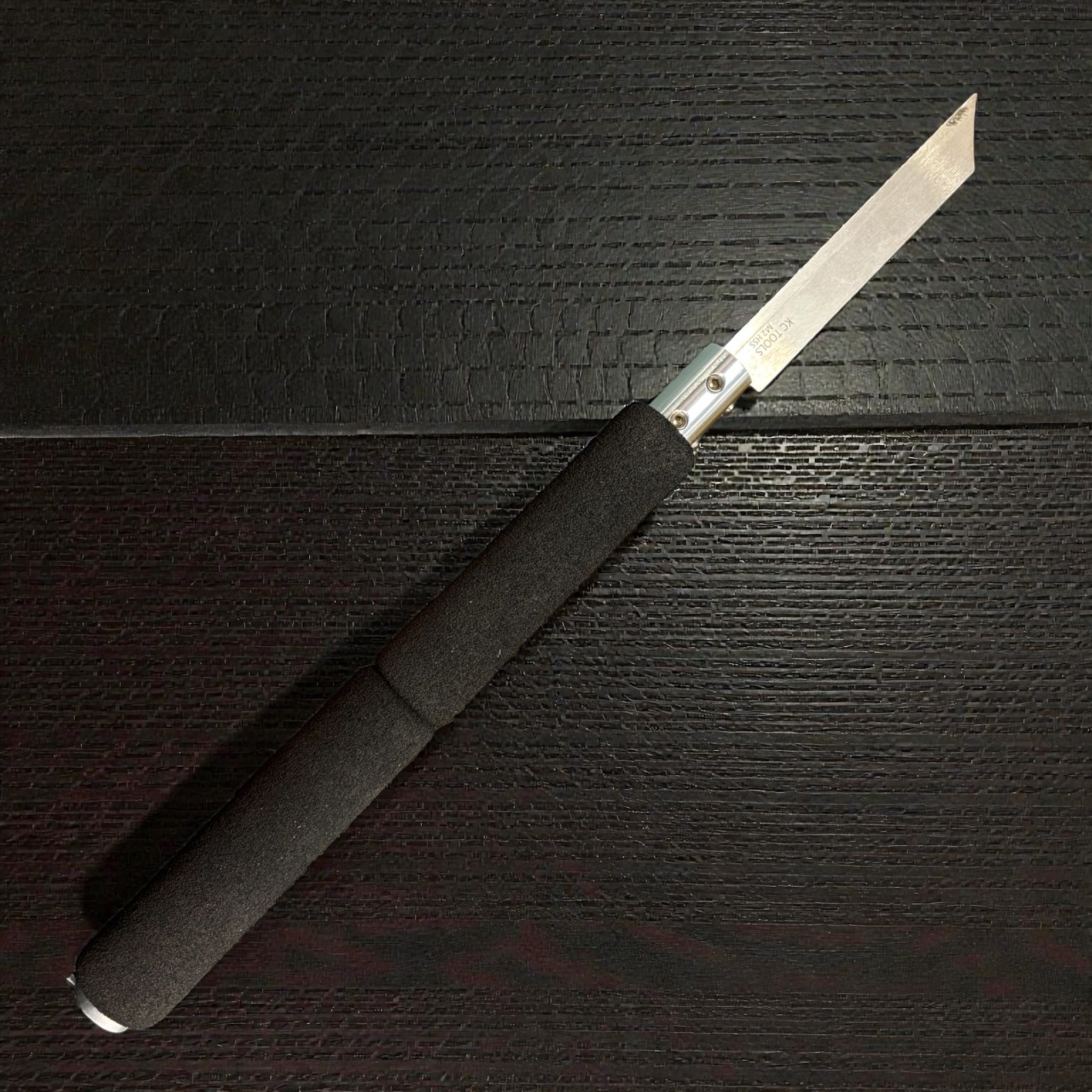 Most metal handles sold for spindle turning are designed for use with both spindle and bowl turning tools. However, the size and weight are often bulky and more suited to bowl turning than spindle turning. Since spindle turning often includes fine detail work, the slightly shorter and light weight of the KC Tools handle is more responsive and allows the turner to better feel the cut being made when turning fine details. It has a comfortable foam handle and a convenient place to store the hex wrench.